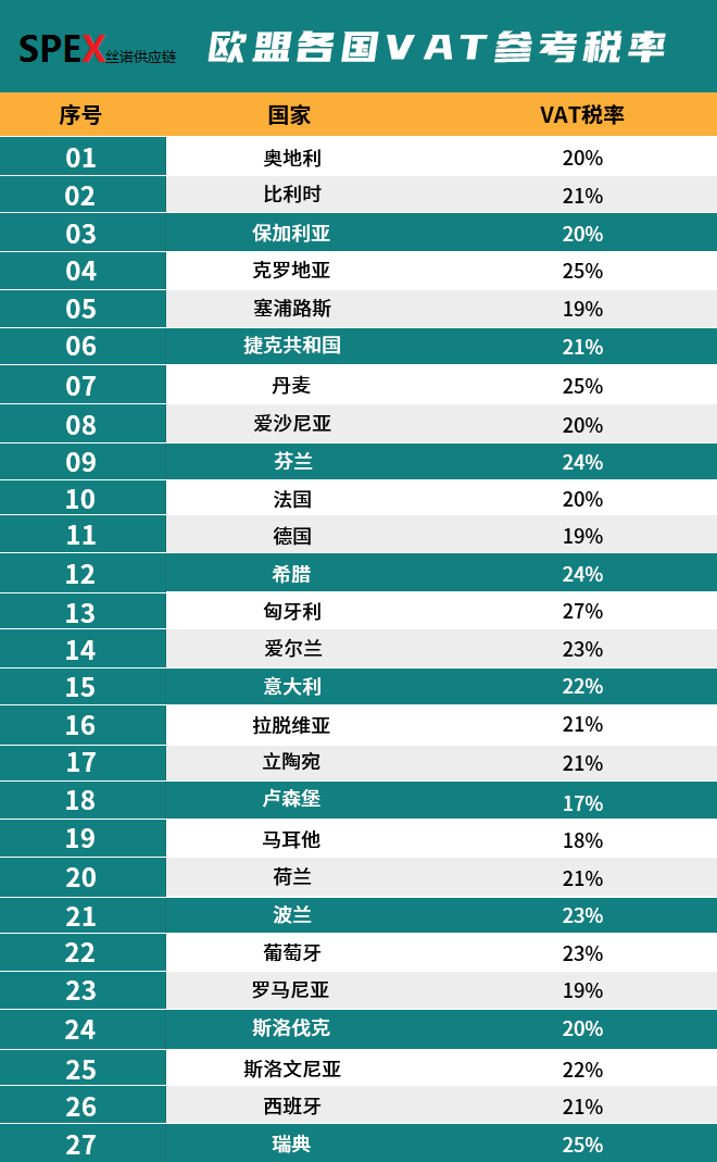 欧盟27国2021.07.01起执行新税率